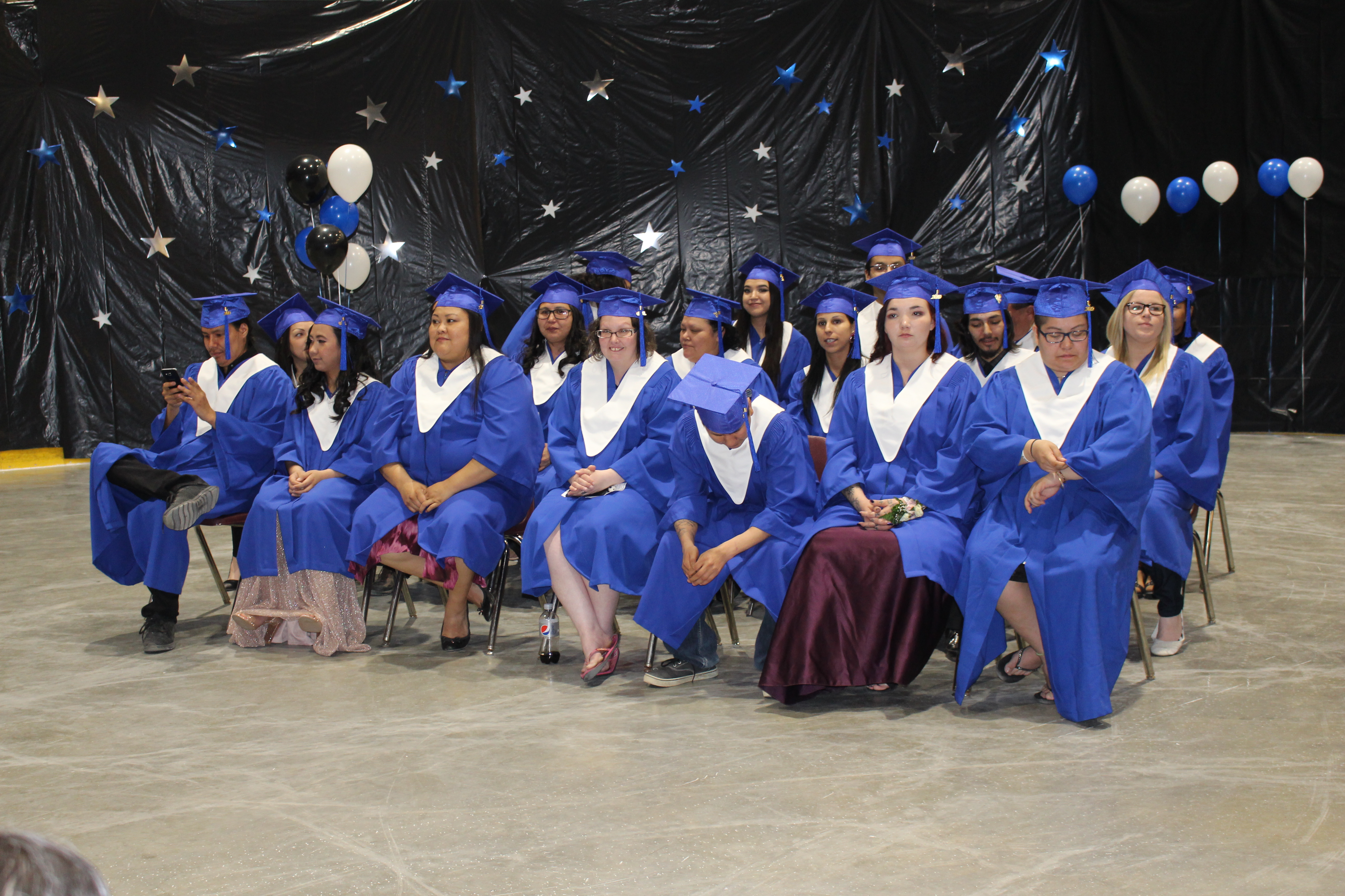 The vast majority of graduates come from the tri-communities with seven coming from Creighton and two from Buffalo Narrows. The ceremony included speeches from several representatives such as Lac La Ronge Indian Band Chief Tammy Cook-Searson, La Ronge Mayor Ron Woytowich, and Cumberland MLA Doyle Vermette who presented the three valedictorians with their special sashes. Some of the graduates began the program as pre-adult 10 students, while others needed to pick up some credits missed in high school.
