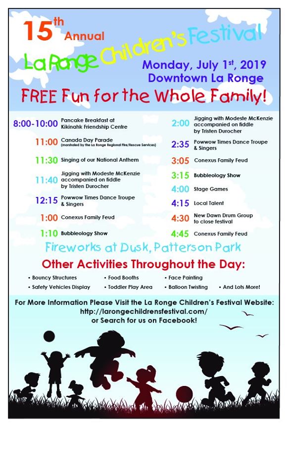 Celebrate Canada Day in La Ronge with the Children’s Festival, July 1 downtown La Ronge.