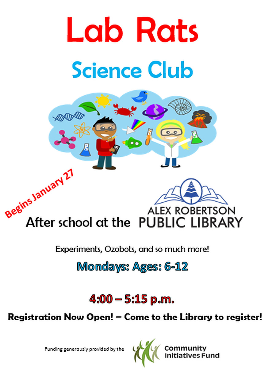Lab Rats Science Club is now accepting registration forms on Mondays for children aged 6-12!