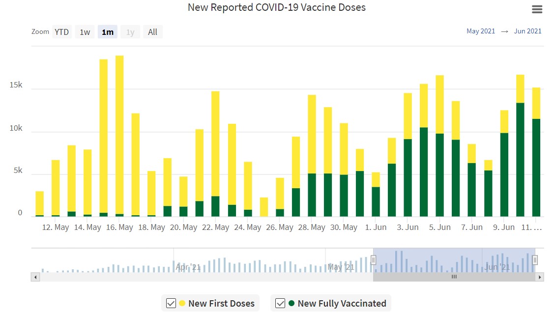 The Saskatchewan government reported 81 new cases of COVID-19 and 98 recoveries in Saskatchewan on June 11. This brings the provincial total to 47,764 cases; 46,311 recoveries and 899 cases considered active.