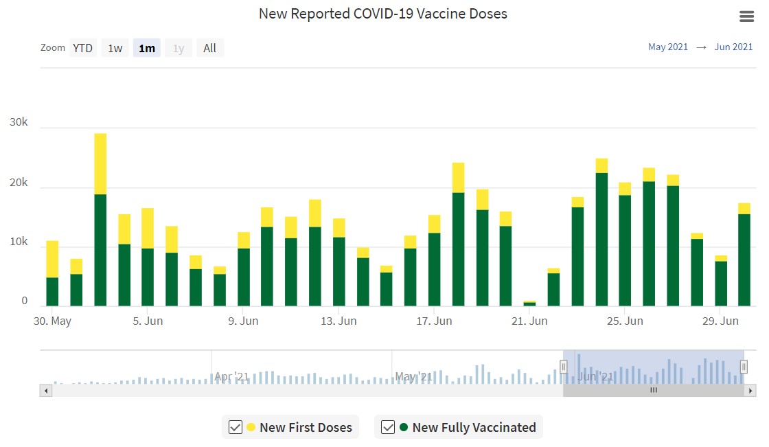 With 31 new cases of COVID-19 and 60 recoveries reported today, this brings the provincial total to 48,854 cases; 47,851 total recoveries, and 435 cases considered active. This is the lowest number of active cases the province has experienced since Oct. 20, 2020.