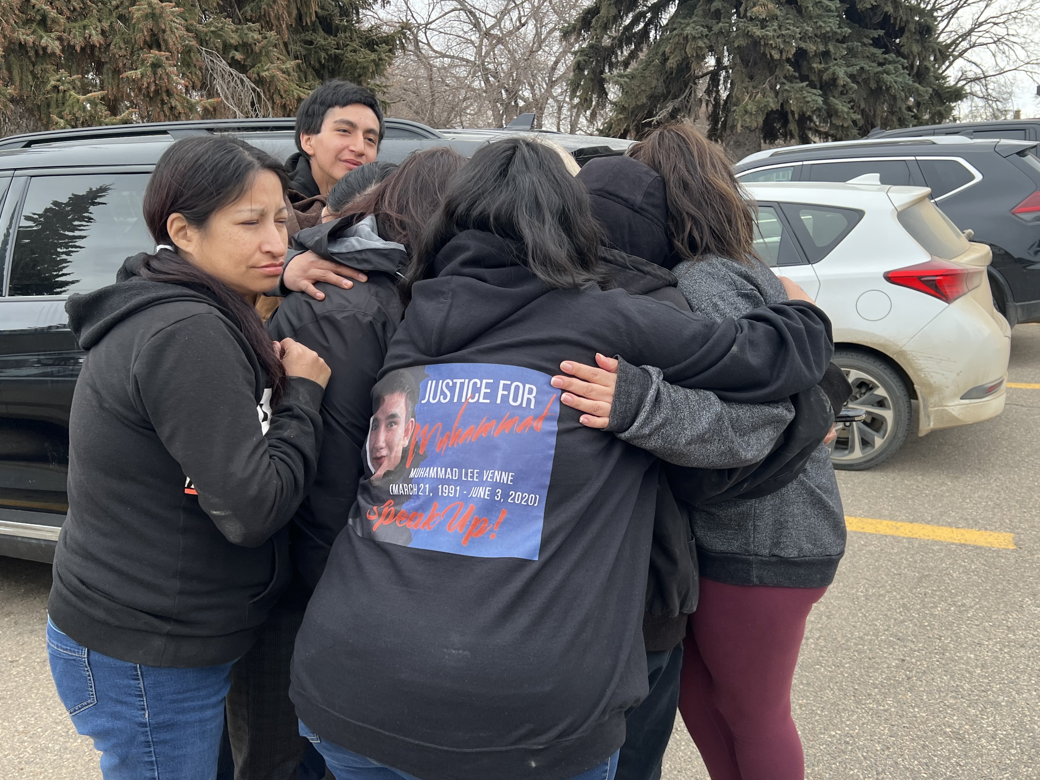 Recalling her younger brother’s sense of humor, and ability to make anyone smile, Shivon Venne fights back tears as she stands outside Prince Albert Court of King’s Bench.