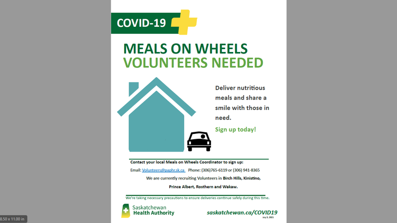 The Prince Albert Region of the Saskatchewan Health Authority has several opportunities for volunteering with the Meals on Wheels Program.All COVID19 Safety Protocols are in place.
