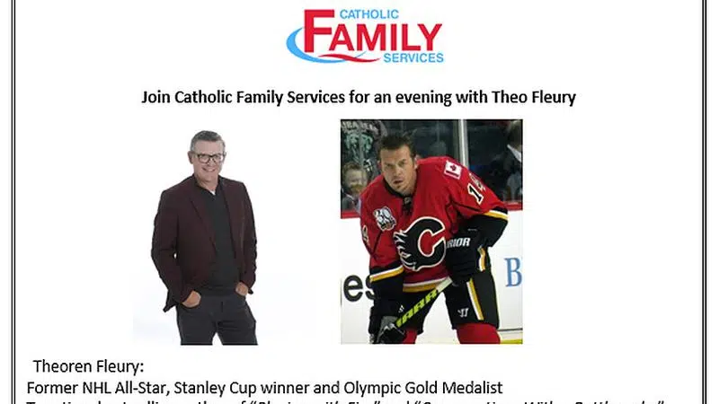 Prince Albert Catholic Family Services and Northern Lights Casino with community sponsorship is hosting an evening with Theoren Fleury former NHL All Star:Wednesday April 22nd 2020 6:30 seating 7:00 p...