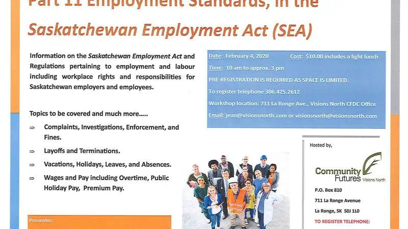 We are hosting a new Employment Standards workshop at Visions North La Ronge on February 4th from 10am to 3pm. For more information or to register contact us at visionsnorth@visionsnorth.com.